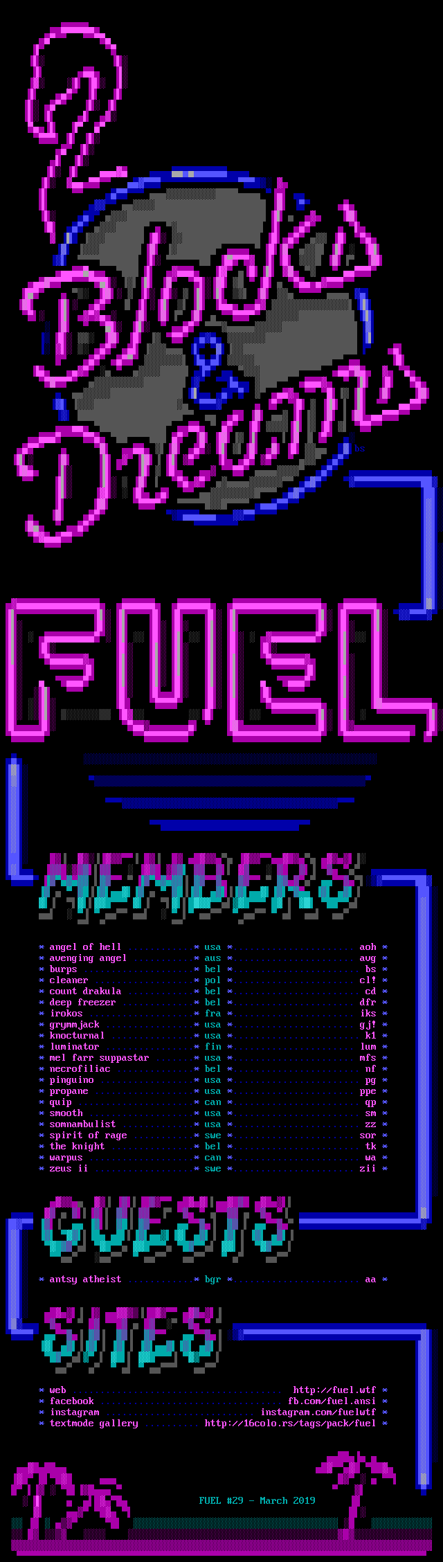 * textmode gallery .......... http://16colo.rs/tags/pack/fuel *