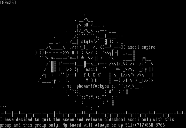 -------------------------------------------I have decided to quit the scene and release oldschool ascii only with this
