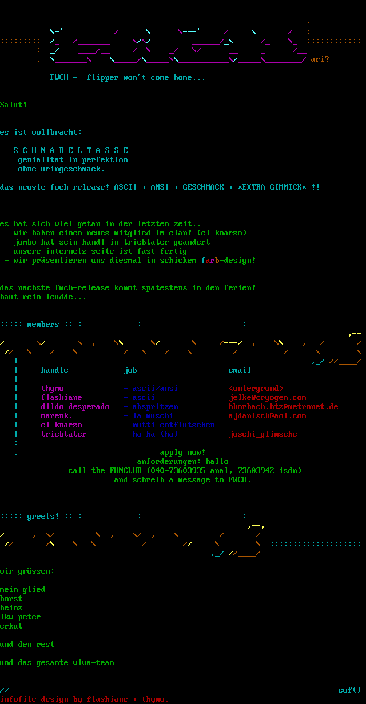 das neuste fwch release! ASCII + ANSI + GESCHMACK + *EXTRA-GIMMICK