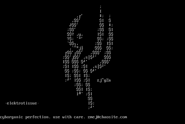 I , , I J I ? ,y, II ? , II ,j , j ,s I , I I I ,s I I I I I zjgZa I I I I elektrotissue I cyborganic perfection. use with care. zmej@chaosite.com