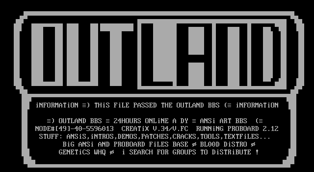 OUTLAND BBS 24HOURS ONLiNE A DY ANSi ART BBS