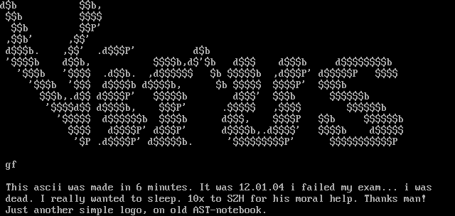 This ascii was made in 6 minutes. It was 12.01.04 i failed my exam... i was