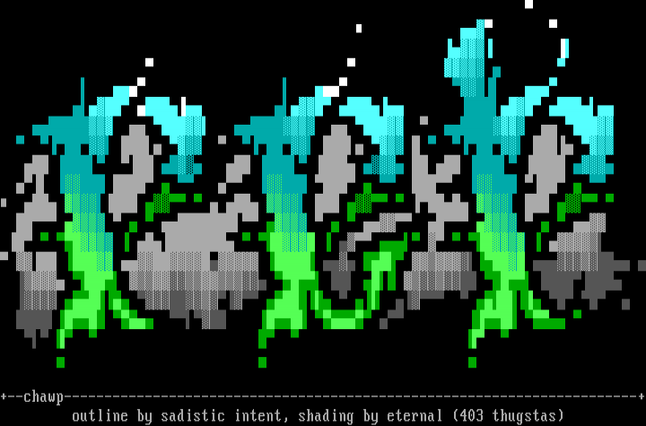 +--chawp-----------------------------------------------------------------------+ outline by sadistic intent, shading by eternal 403 thugstas