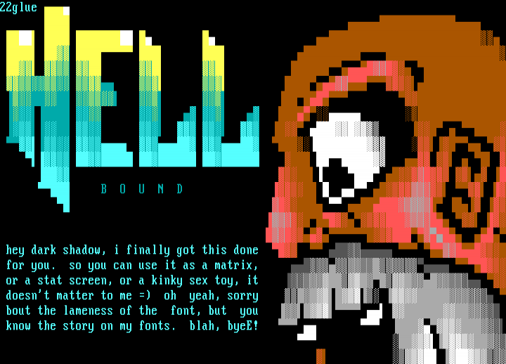 doesnt matter to me oh yeah, sorry bout the lameness of the font, but you know the story on my fonts. blah, byeE!