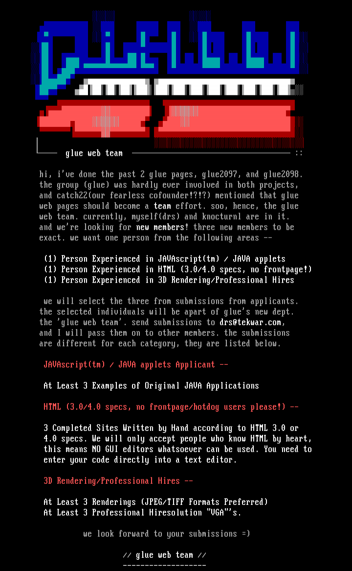 1 Person Experienced in HTML 3.0/4.0 specs, no frontpage!