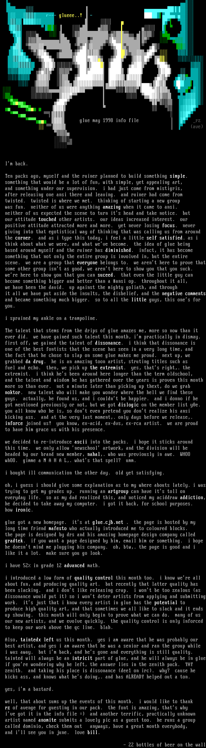 glue got a new homepage. its at glue.cjb.net . the page is hosted by my