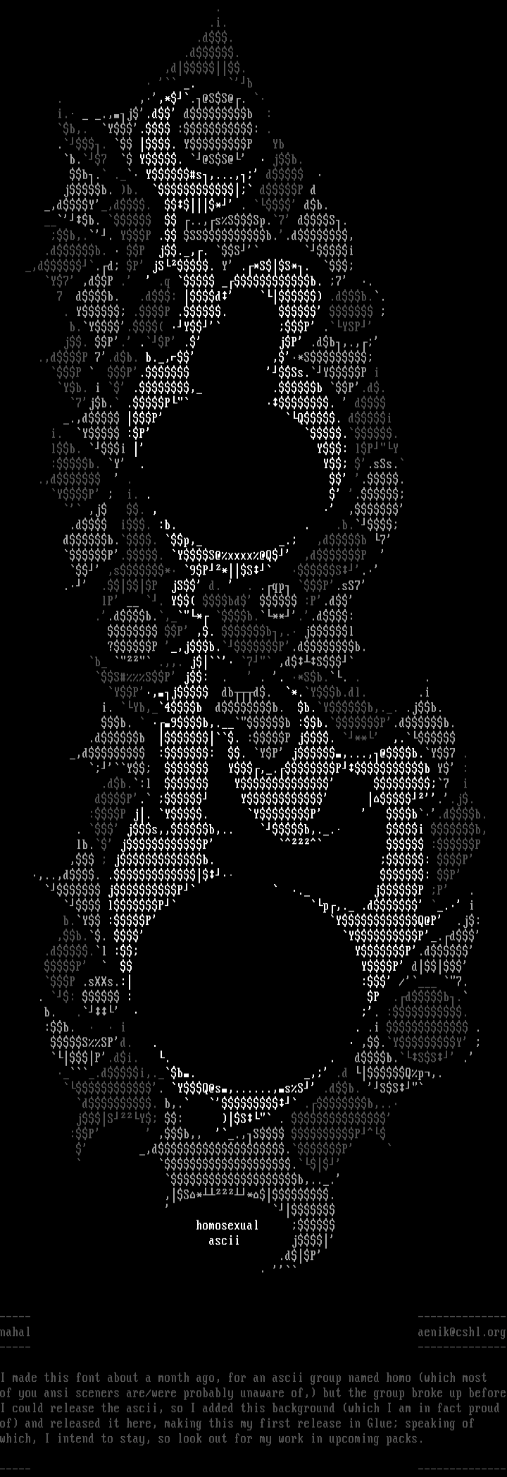 I made this font about a month ago, for an ascii group named homo which most