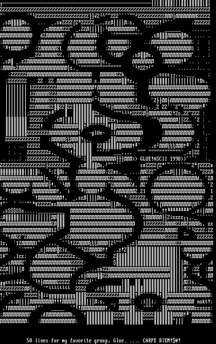 . .... .ZZZZZZZZZZZZ, :l GLUE!ASCII 1998 :.
