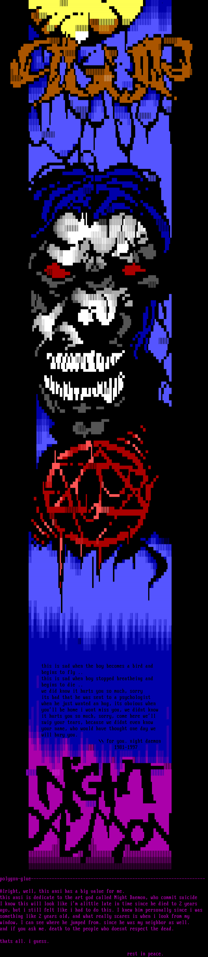 this ansi is dedicate to the art god called Night Daemon, who commit suicide