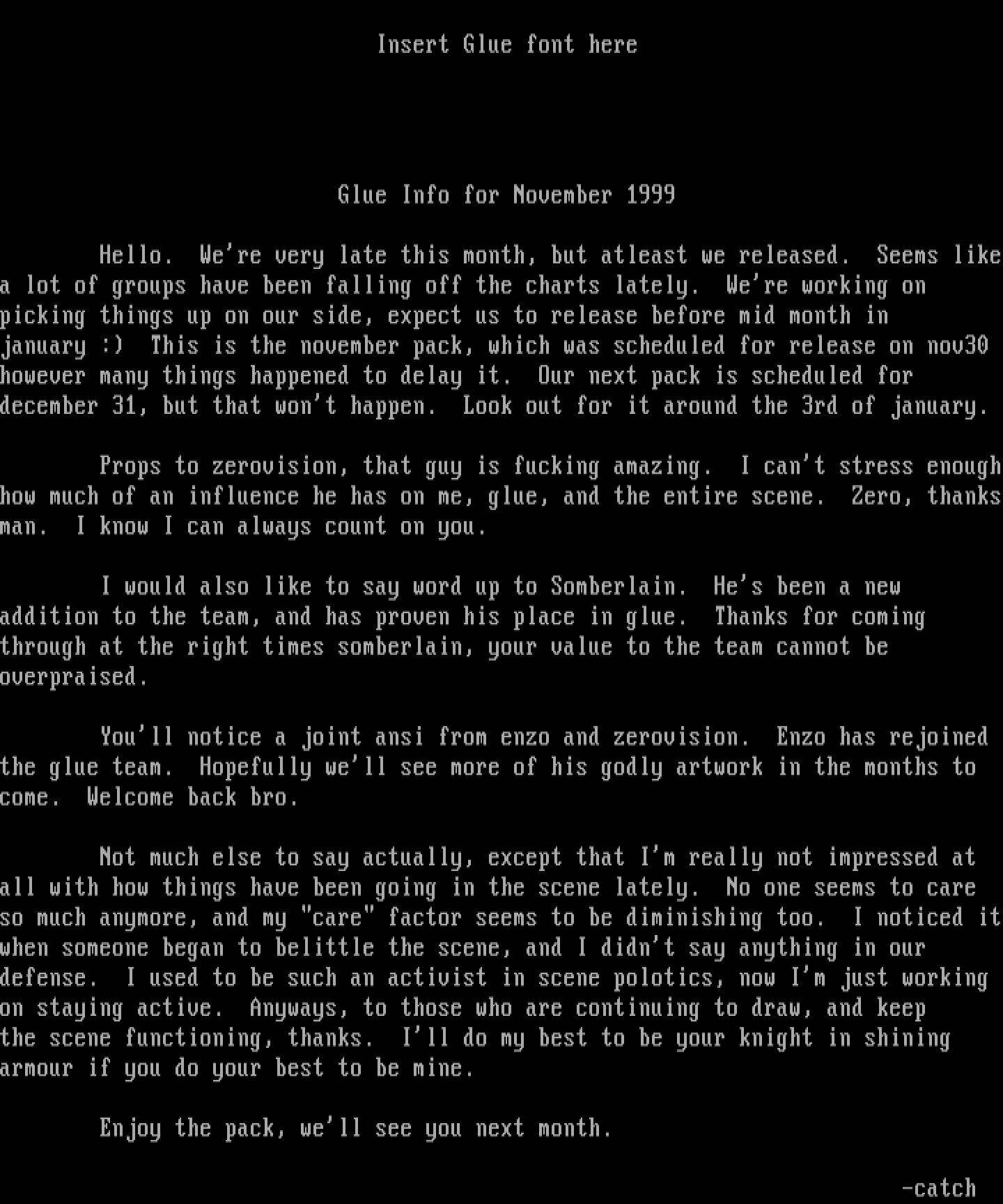 Props to zerovision, that guy is fucking amazing. I cant stress enoughhow much of an influence he has on me, glue, and the entire scene. Zero, thanksman. I know I can always count on you.