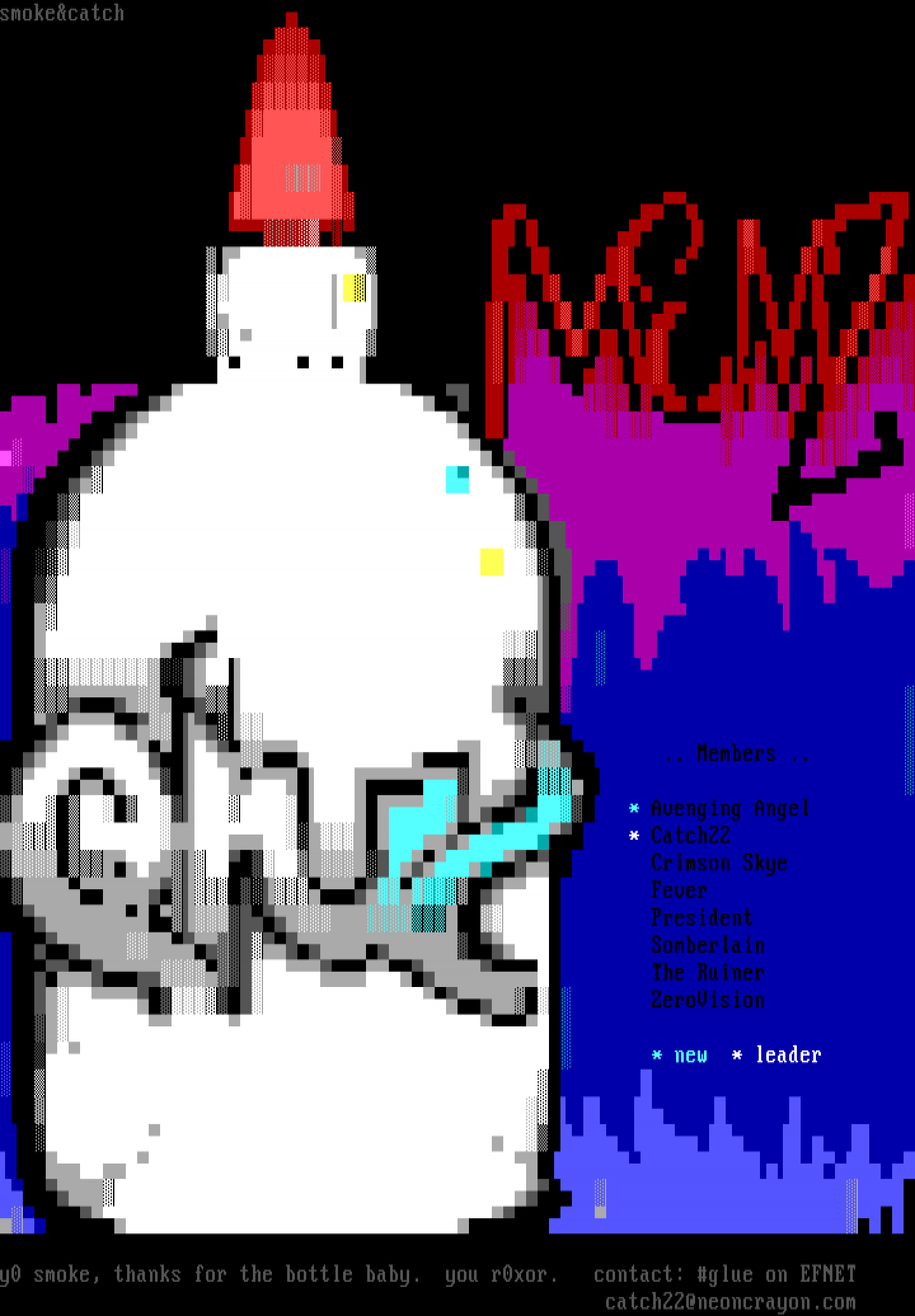 y0 smoke, thanks for the bottle baby. you r0xor. contact: glue on EFNET