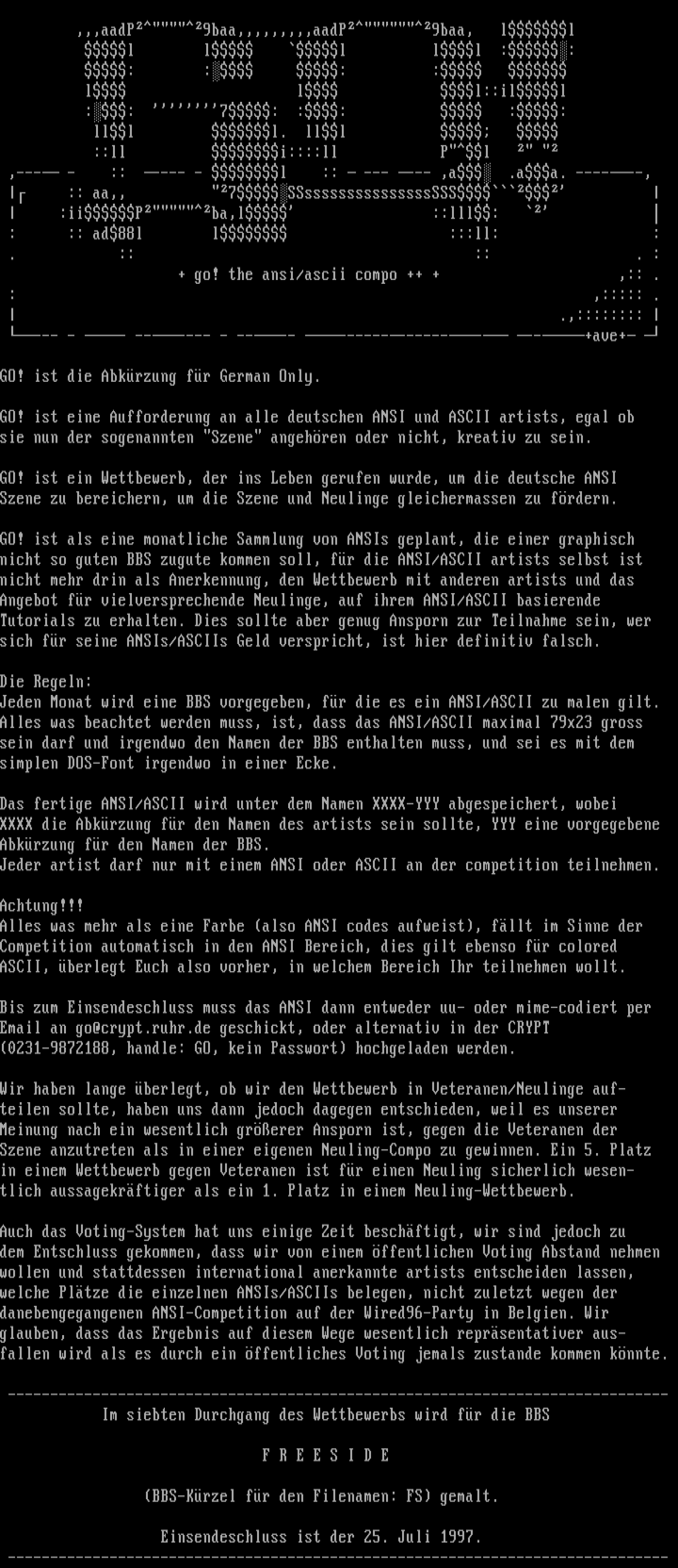 GO! ist eine Aufforderung an alle deutschen ANSI und ASCII artists, egal ob