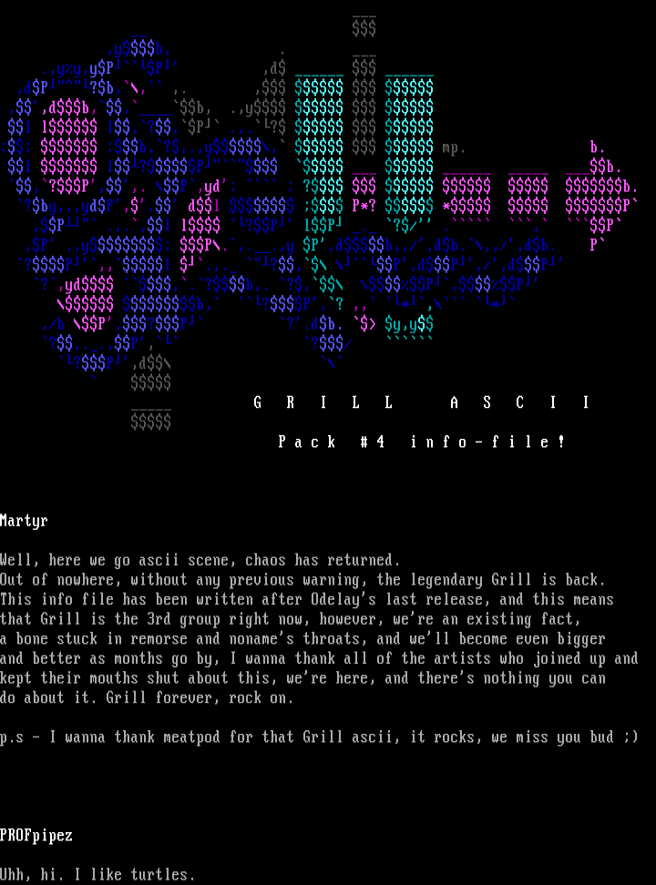 p.s - I wanna thank meatpod for that Grill ascii, it rocks, we miss you bud