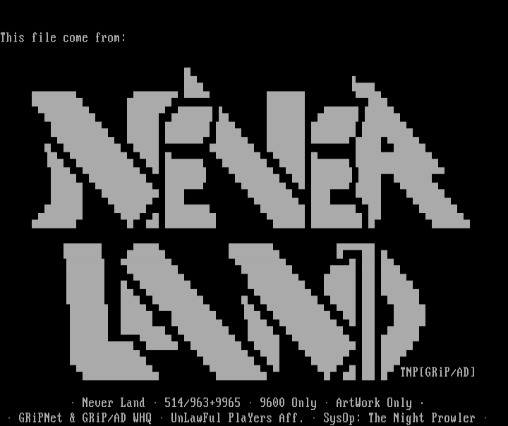 GRiPNet GRiP/AD WHQ UnLawFul PlaYers Aff. SysOp: The Night Prowler