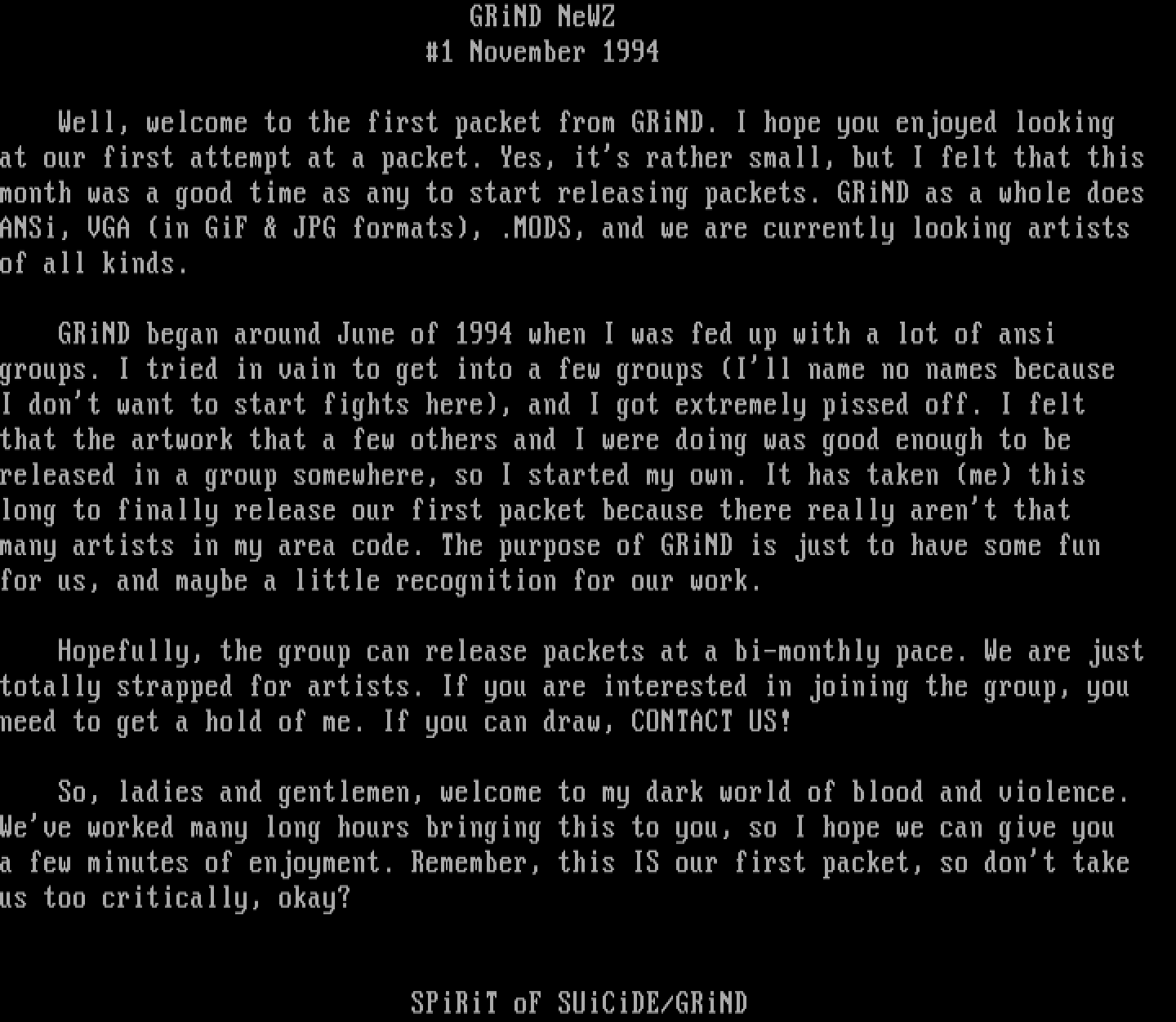 GRiND began around June of 1994 when I was fed up with a lot of ansi