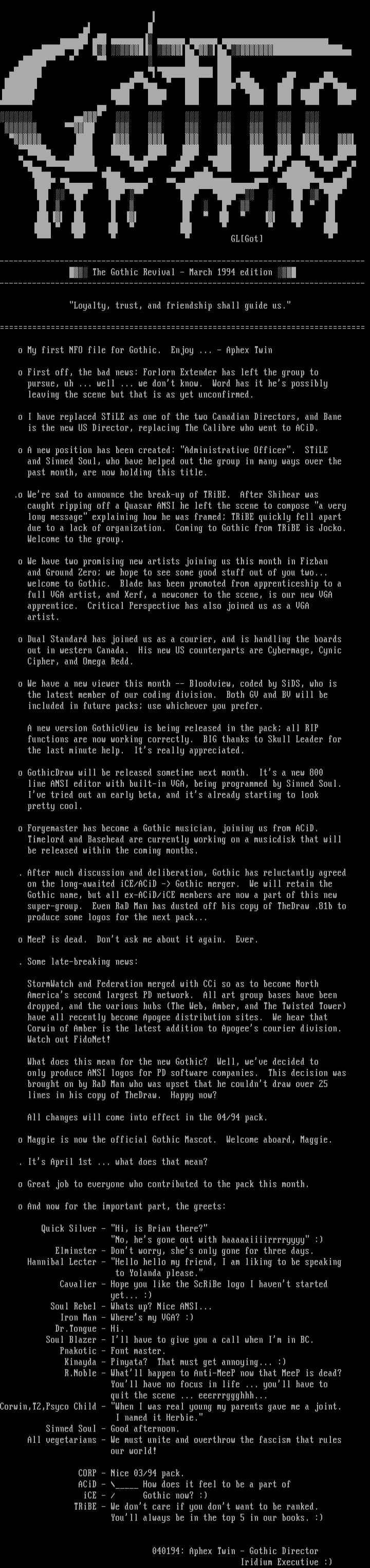 o My first NFO file for Gothic. Enjoy ... - Aphex Twin
