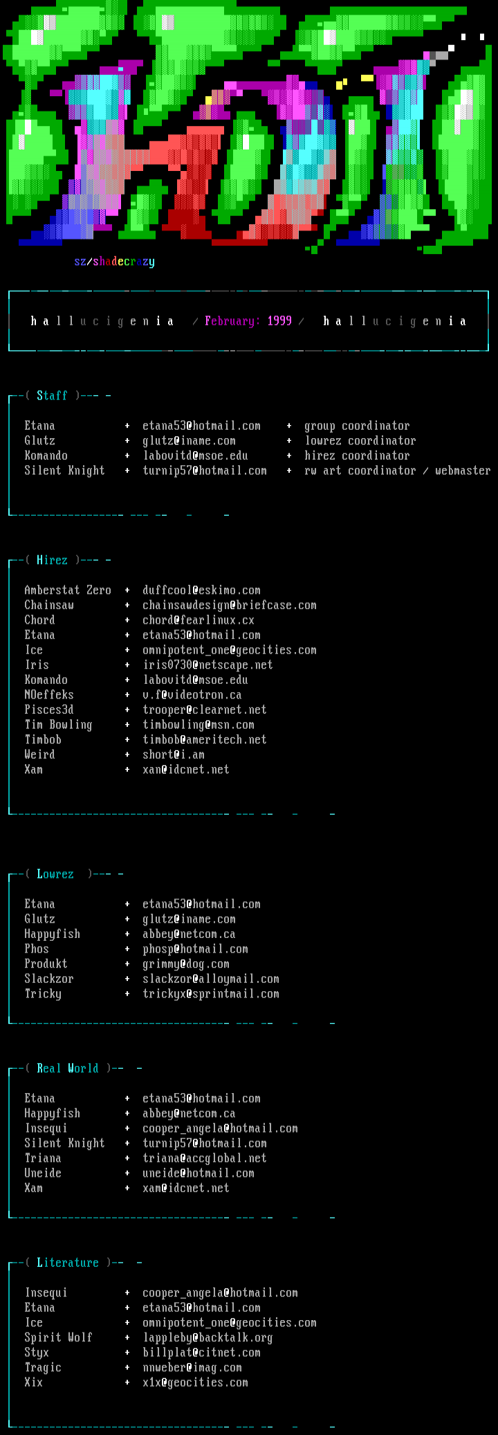 h a l l u c i g e n i a / February: 1999 / h a l l u c i g e n i a