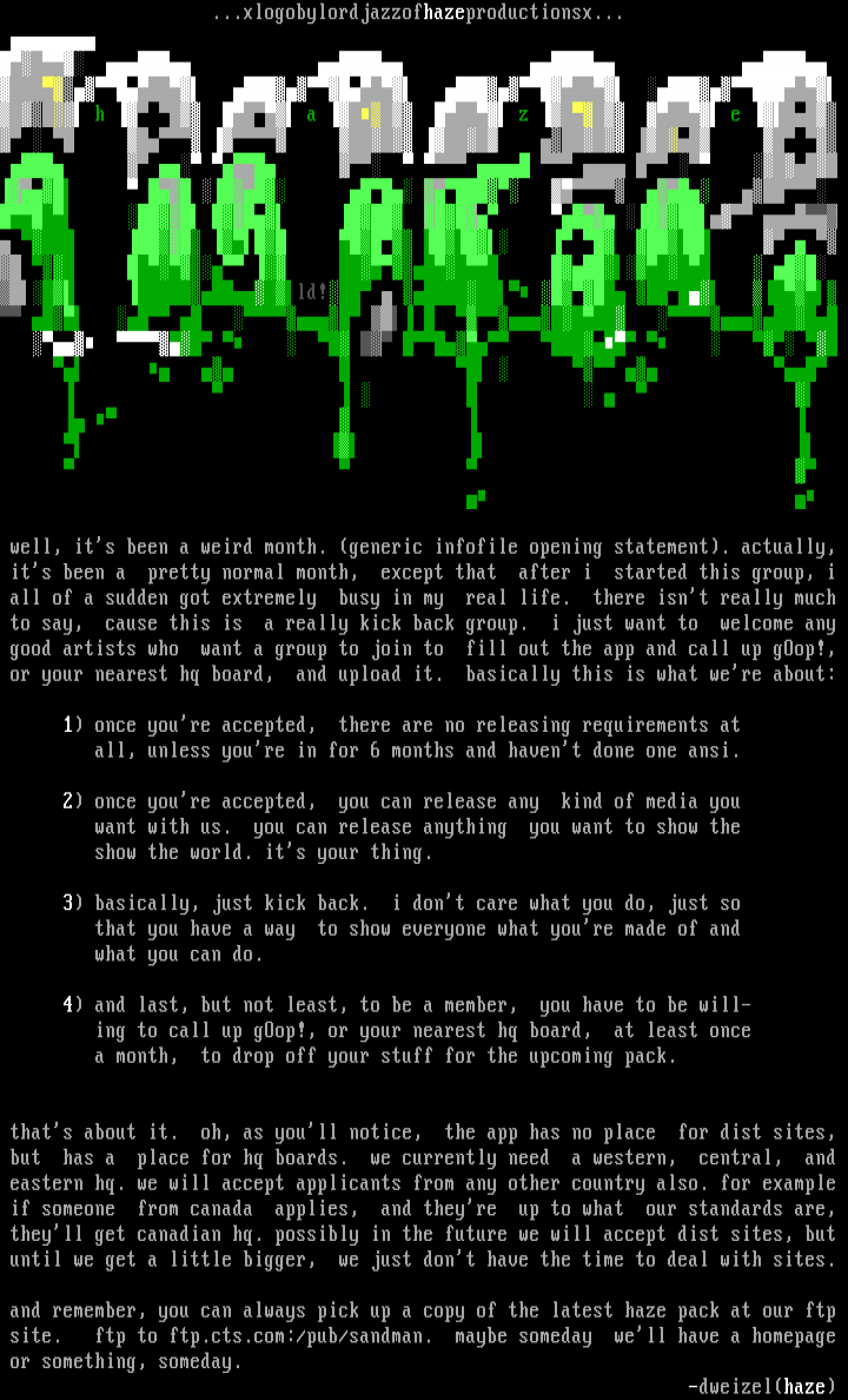 and remember, you can always pick up a copy of the latest haze pack at our ftp