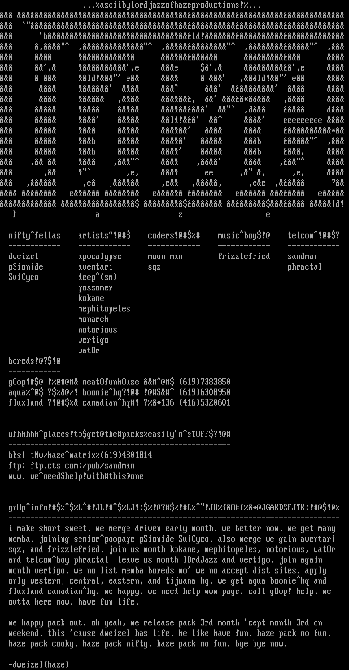 haze pack cooky. haze pack nifty. haze pack no fun. bye bye now.