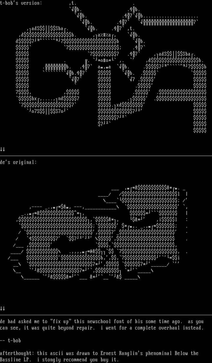 afterthought: this ascii was drawn to Ernest Ranglins phenominal Below the