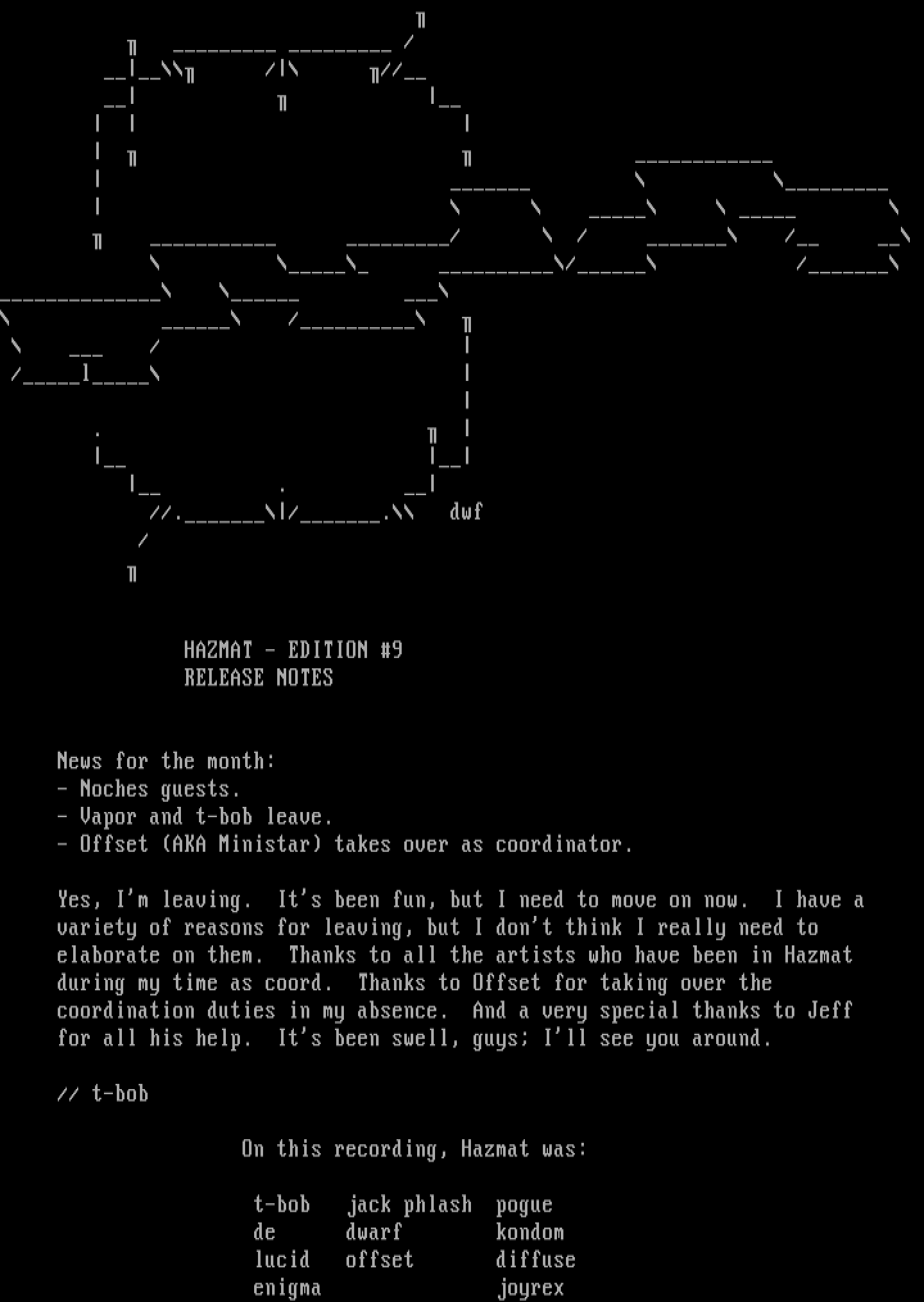 elaborate on them. Thanks to all the artists who have been in Hazmat