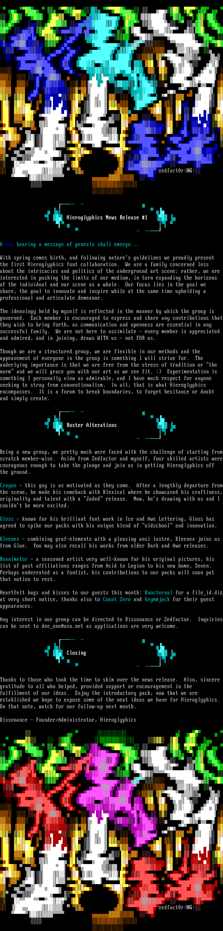 Any interest in our group can be directed to Dissonance or Zedfactor. Inquiriescan be sent to deeone@usa.net as applications are very welcome.