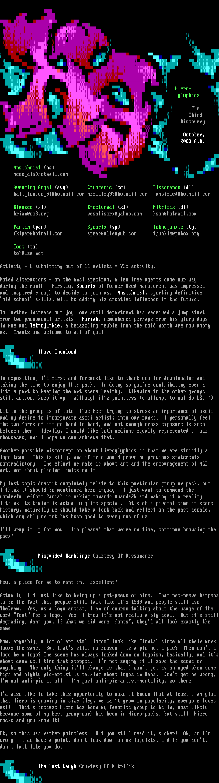 and my desire to incorporate ascii artists into our ranks. I personally feel