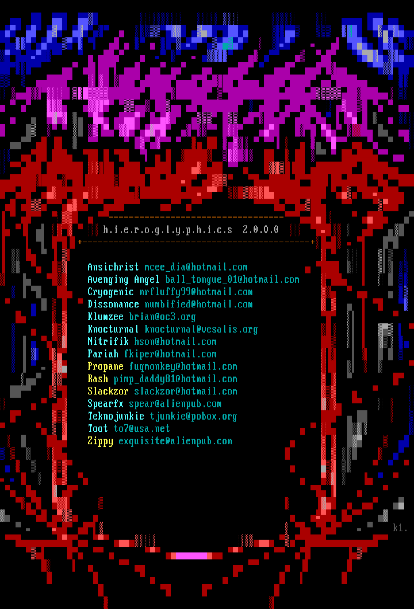 Slackzor slackzor@hotmail.com Spearfx spear@alienpub.com Teknojunkie tjunkie@pobox.org Toot to7@usa.net Zippy exquisite@alienpub.com