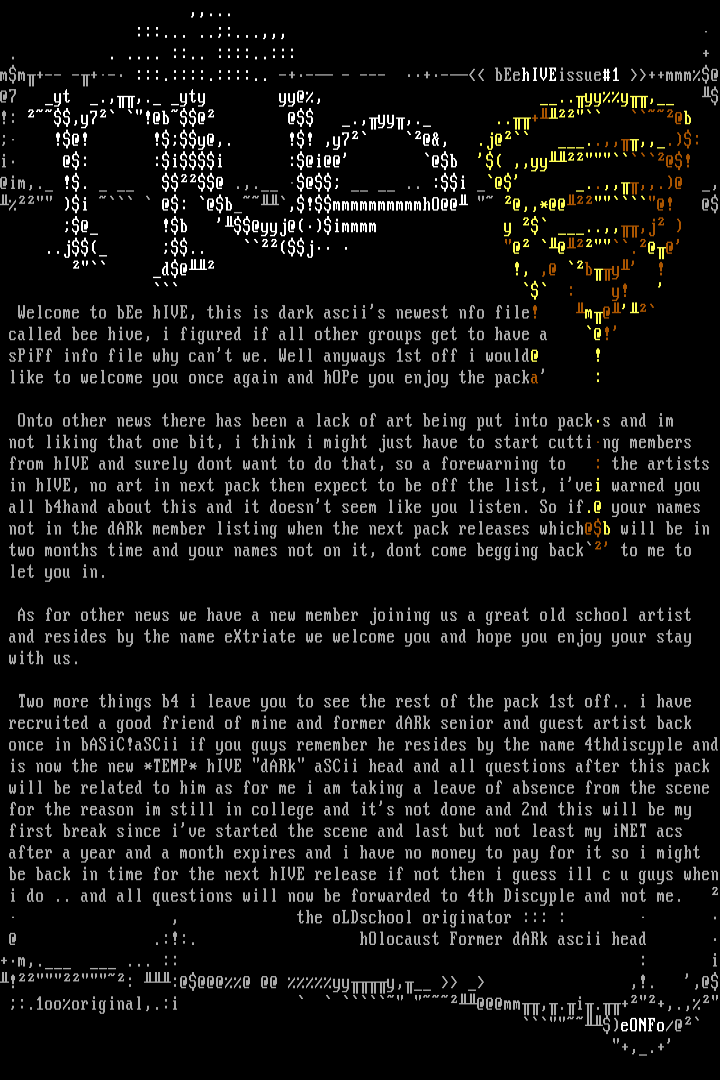 Welcome to bEe hIVE, this is dark asciis newest nfo file