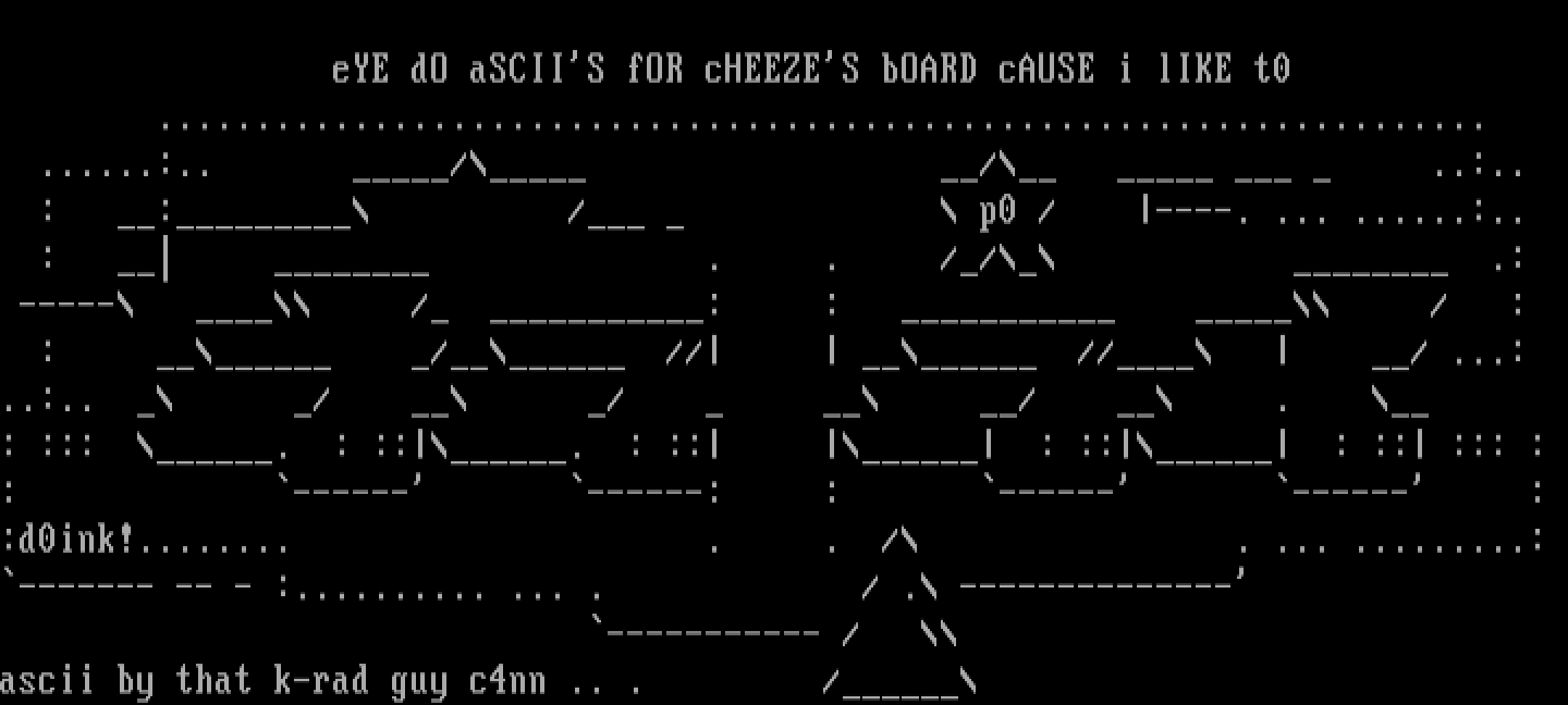 eYE dO aSCIIS fOR cHEEZES bOARD cAUSE i lIKE t0