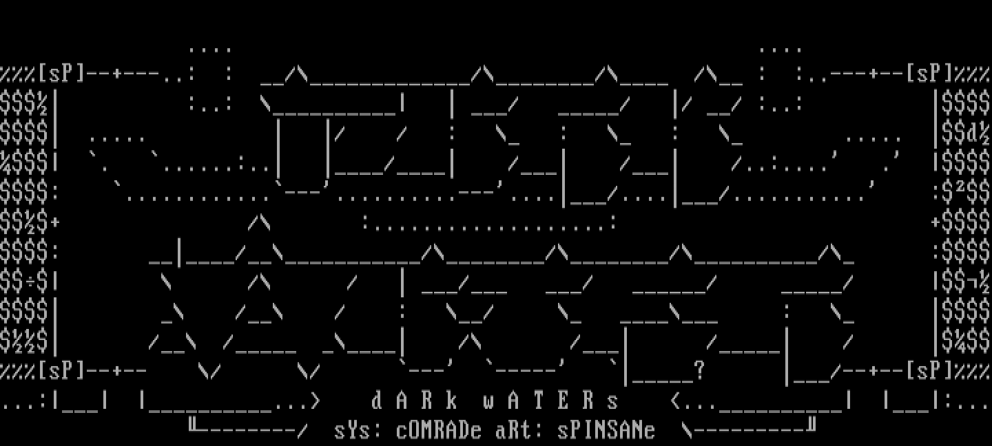 sP--+---..: : / : :..---+--sP :..: / / / / :..: ..... / / : : : ..... d . ......:.. / / / /..:.... . : ............---..........---..../..../........... :+ / :...................: +: : / / / / / / / / : / : / / / / / / sP--+-- / / --- ----- ? /--+--sP...: ... d A R k w A T E R s ... :... --------/ sYs: cOMRADe aRt: sPINSANe ---------