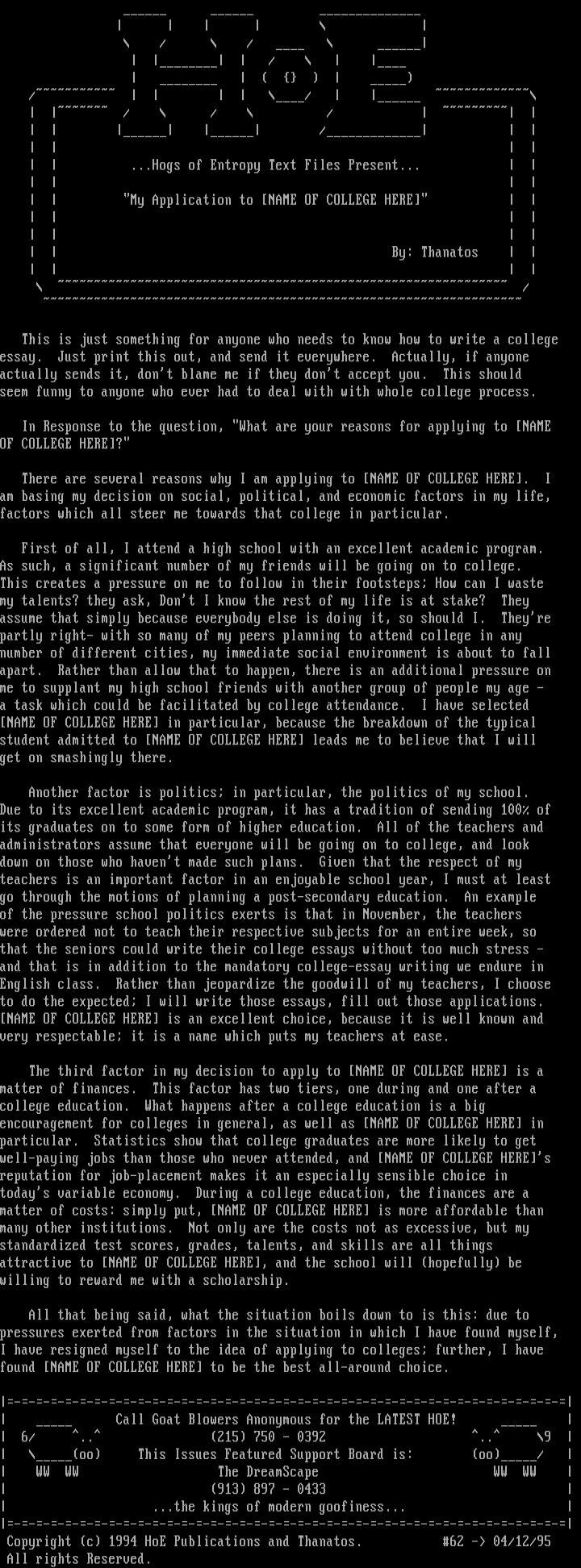 Copyright c 1994 HoE Publications and Thanatos. 62 - 04/12/95