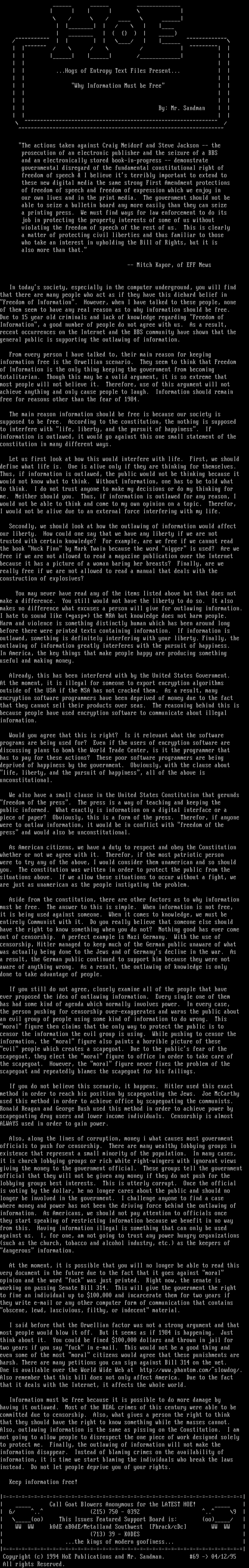 Copyright c 1994 HoE Publications and Mr. Sandman. 69 - 04/12/95