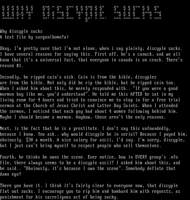 Fourth, he thinks he owns the scene. Ever notice, how in EVERY groups .nfo