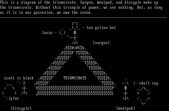 This is a diagram of the triumvirate. Sargon, meatpod, and discyple make up