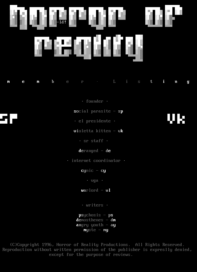 CCopyright 1996, Horror of Reality Productions. All Rights Reserved.