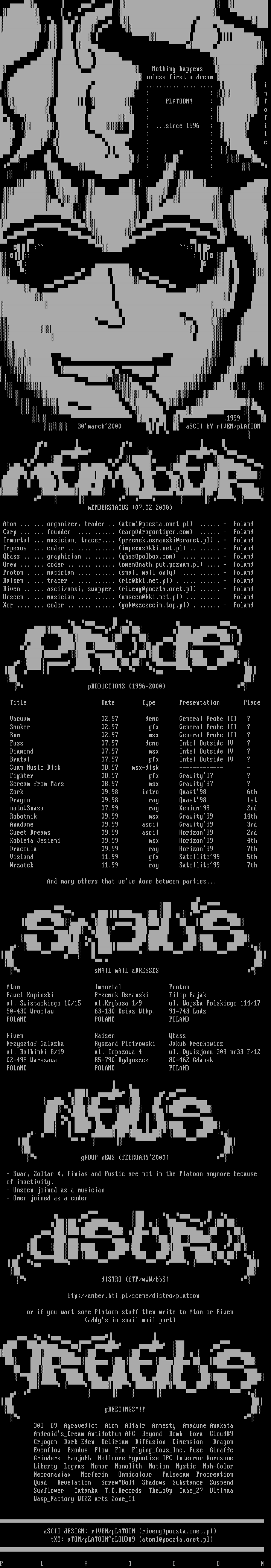 aSCII dESIGN: rIVEN/pLATOON riveng@poczta.onet.pl