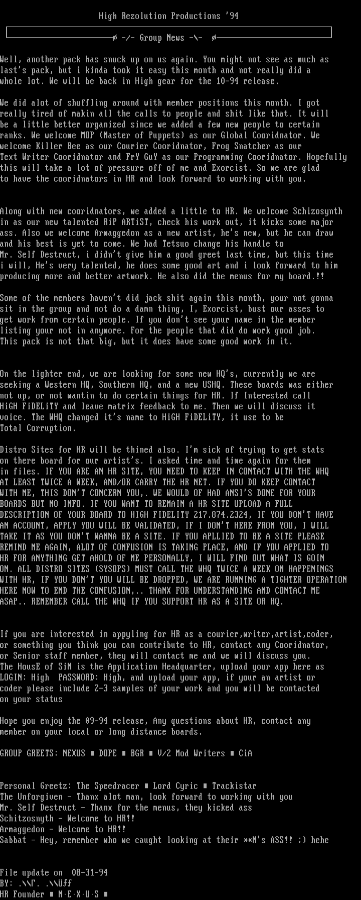 ON. ALL DISTRO SITES SYSOPS MUST CALL THE WHQ TWICE A WEEK ON HAPPENINGS