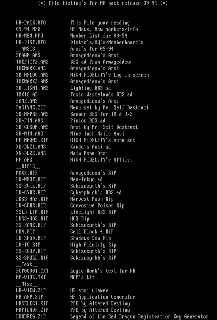 * File listings for HR pack release 09-94 *