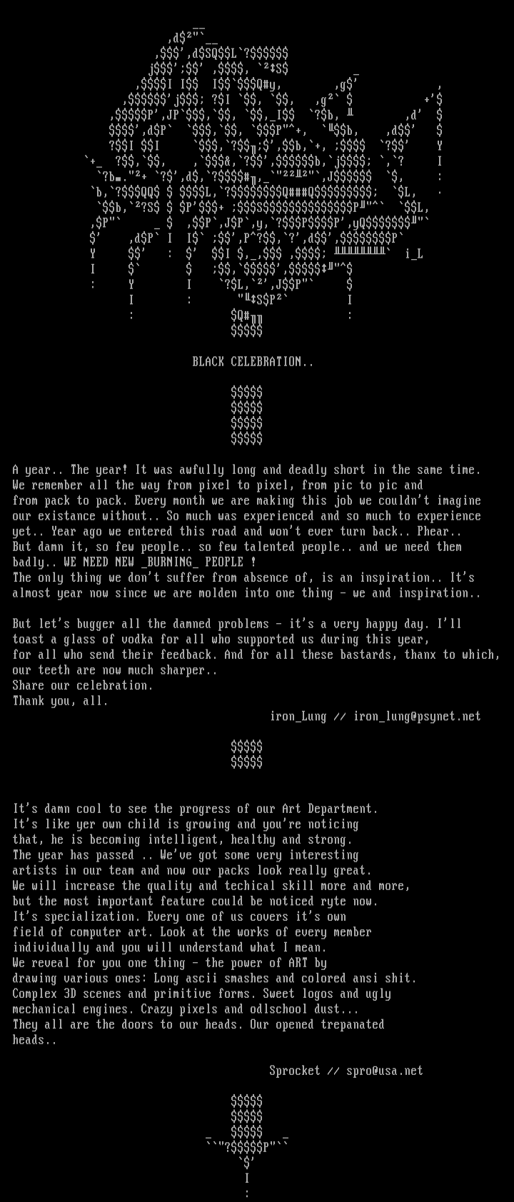 drawing various ones: Long ascii smashes and colored ansi shit.