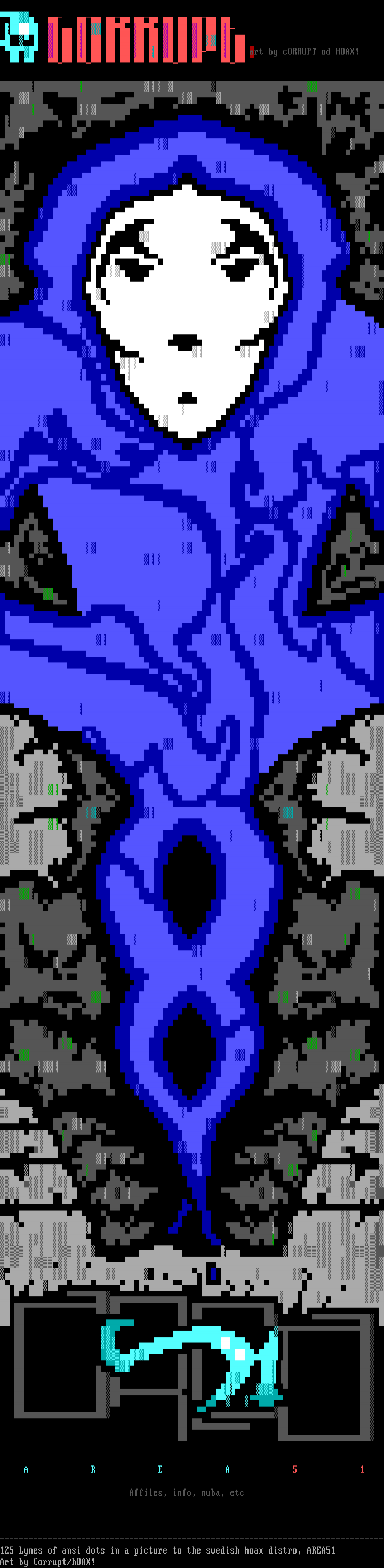 --------------------------------------------------------------------------------125 Lynes of ansi dots in a picture to the swedish hoax distro, AREA51