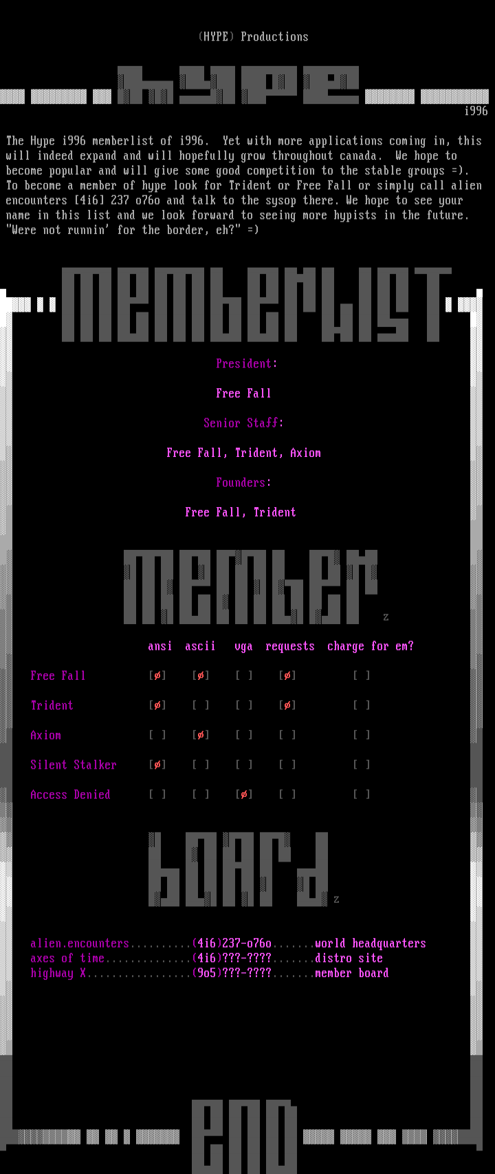 The Hype i996 memberlist of i996. Yet with more applications coming in, this will indeed expand and will hopefully grow throughout canada. We hope to