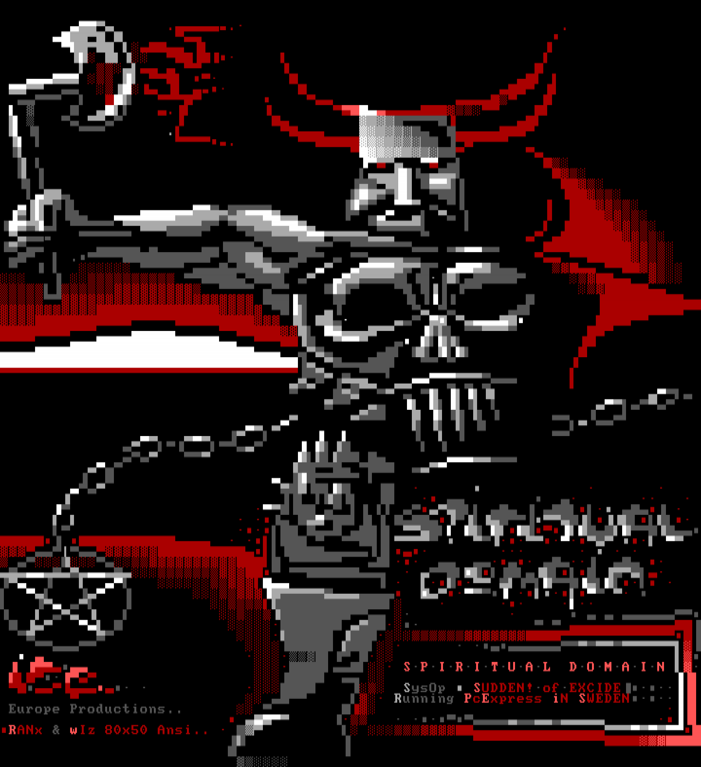 SPIRITUAL DOMAIN SysOp SUDDEN!ofEXCIDE Running PcExpress iN SWEDEN Europe Productions.. RANx wIz 80x50 Ansi..