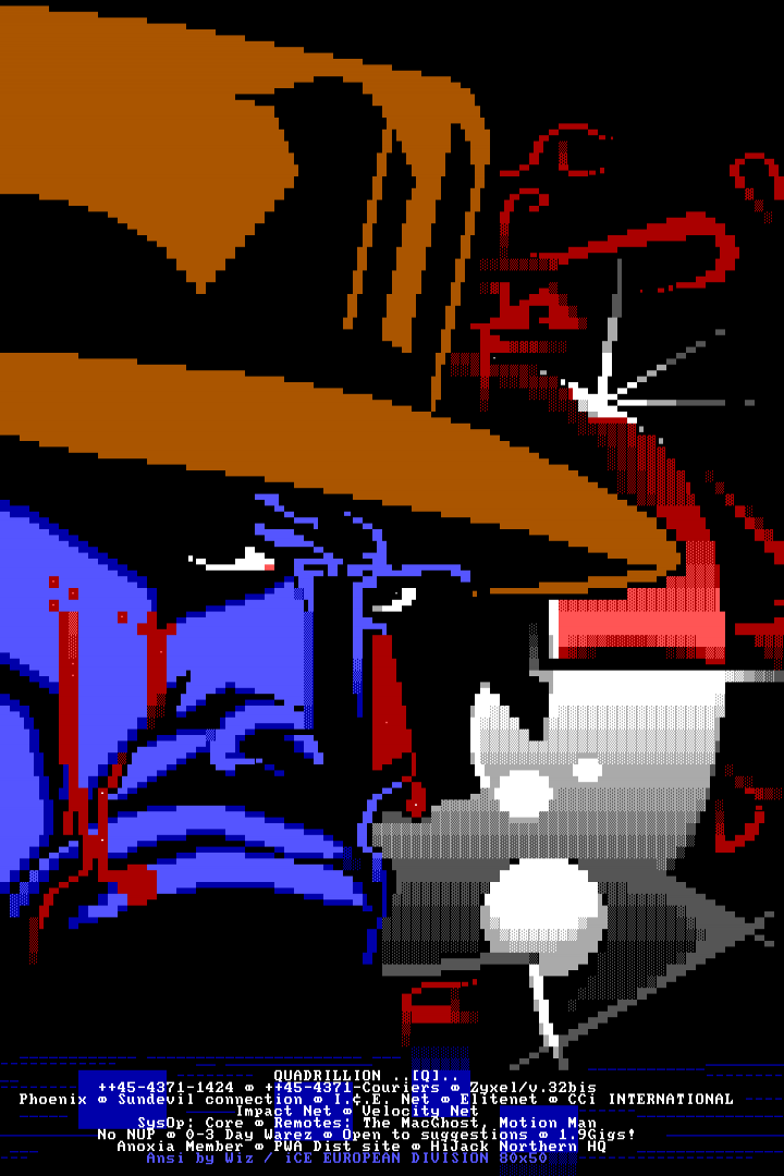 Phoenix Sundevil connection I..E. Net Elitenet CCi INTERNATIONAL ---- Impact Net Velocity Net ------ SysOp: Core Remotes: The MacGhost, Motion Man