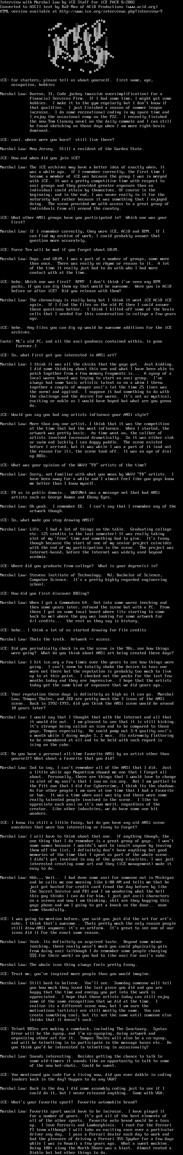 Interview with Marshal Law by iCE Staff for iCE PACK 8/2002