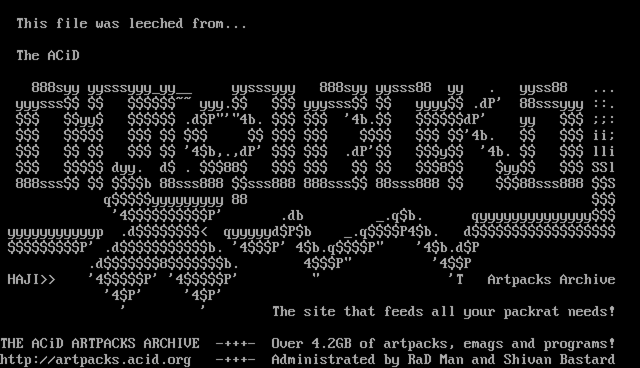 http://artpacks.acid.org -+++- Administrated by RaD Man and Shivan Bastard