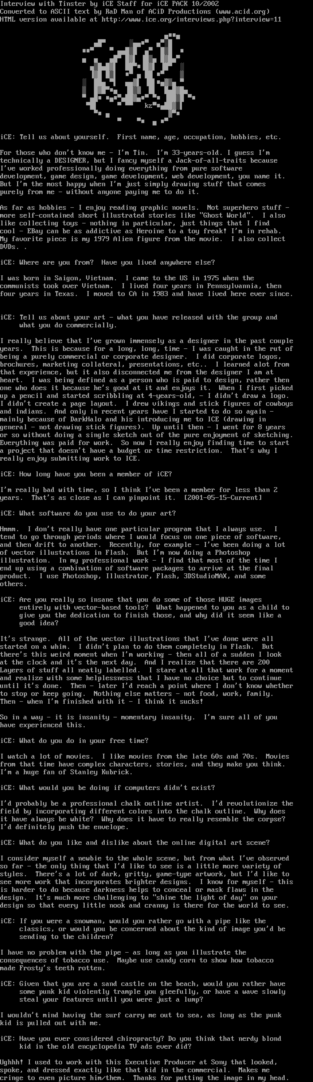 Interview with Tinster by iCE Staff for iCE PACK 10/2002