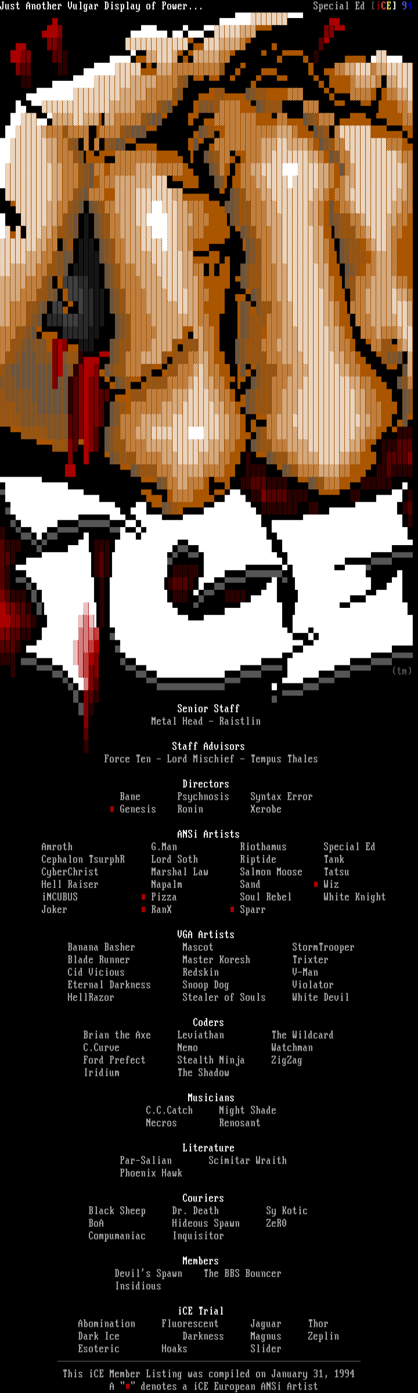 A denotes a iCE European ANSi Artist