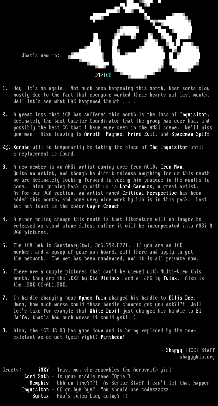3. A new member is an ANSi artist coming over from ACiD, Iron Man.