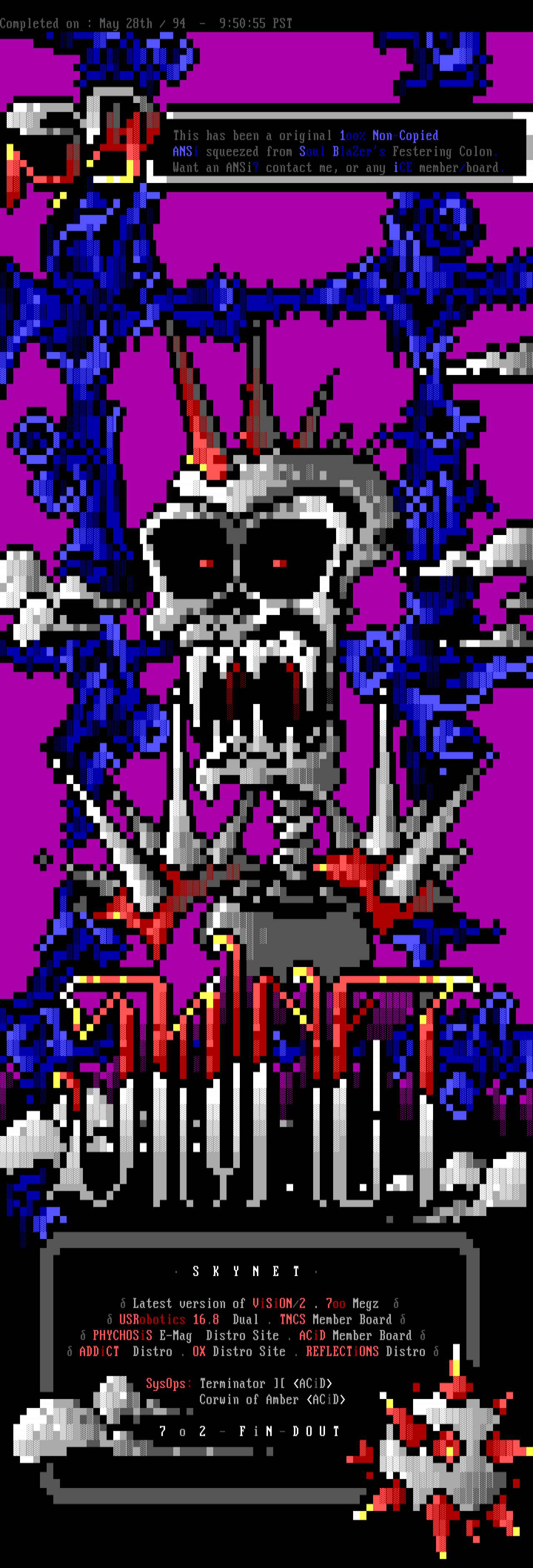 This has been a original 1oo Non-Copied ANSi squeezed from Soul BlaZers Festering Colon. Want an ANSi? contact me, or any iCE member/board.